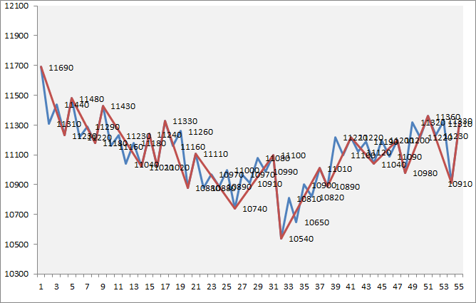 結局14700まで大きく戻してしまい良く分からない展開になってしまいました。