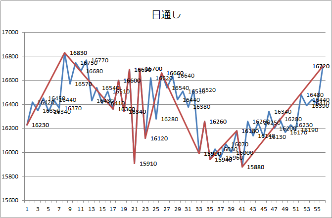 荒っぽい動きになっていますが、日中のみのPB図を見ると60分足はきれいな下降トレンドですね。