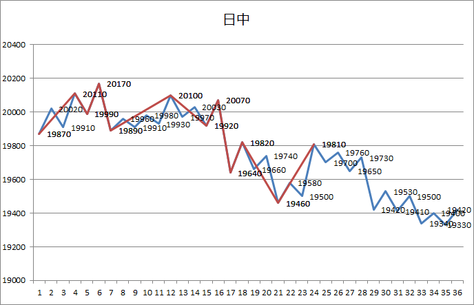 (2)13:50の足の19450から19400を経て15:10の足の19430越えを買う