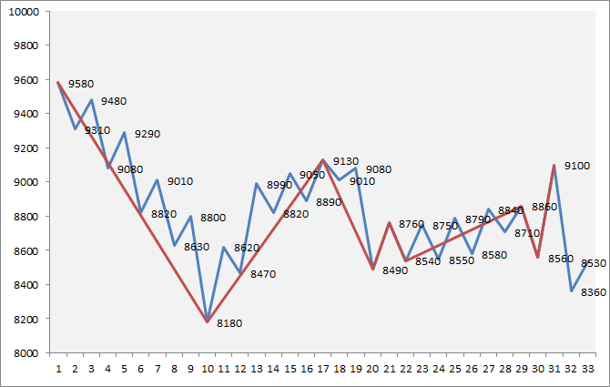 2002年11月11日のチャートトレーニング 【前日のチャート】 【ピークボトム合成図】 【経過...