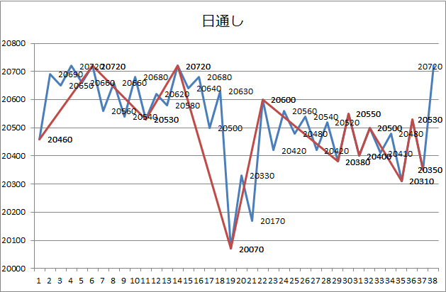 9:00 低く寄ってなんだか20720が抵抗帯として固いのかなぁというような印象になりつつあります。