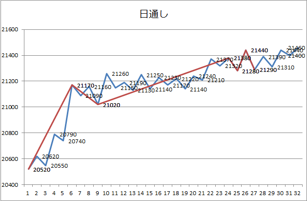 (1)5:10の足の21460から21440を経て9:00の足の21460超えを買う