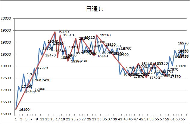 (1)5:00の足の18970から18870を経て9:00の足の18930超えを買う