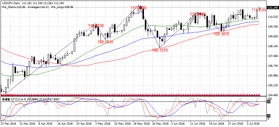 USD/JPY 2018年7月10日(火)の分析