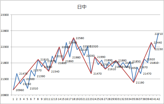 この後戻り売りを考えるわけですが、問題は朝からずっと下がっていてこの後調整後に売っても下落余地があるのか?ってところです( -_-)