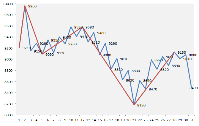 2002年10月28日のチャートトレーニング 【前日のチャート】 【ピークボトム合成図】 【経過...