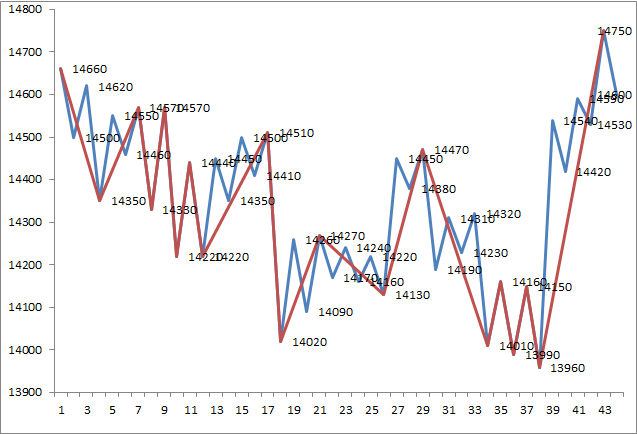 2014年5月28日のチャートトレーニング 【前日のチャート】 【ピークボトム合成図】 【経過本...