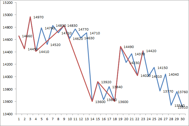 2013年8月14日のチャートトレーニング 【前日のチャート】 【ピークボトム合成図】 【経過本...