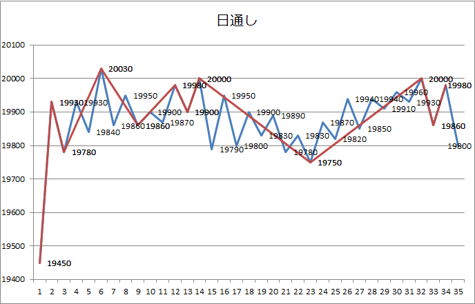 (2)10:00の足の19840から19800を経て10:30の足の19820越えを買う